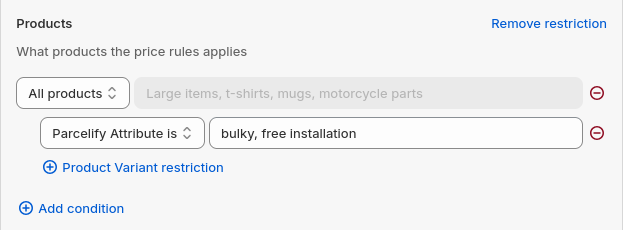 Parcelify Attributes allow you to add additional information to product variants which can then be used in your shipping rates. This works similar to Shopify product tags, except you apply them to individual product variants.
