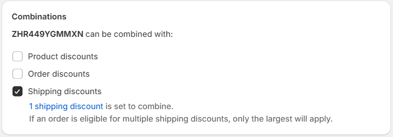 4. Scroll down to ‘Combinations’ and set it to combine with shipping discounts